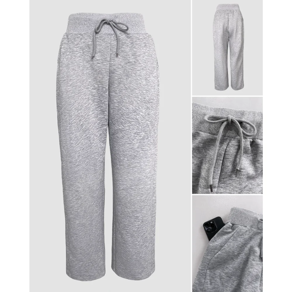 Elegant Two Pieces Tied Detail Hooded Long Sleeve Sweatshirt and Casual Wide Le